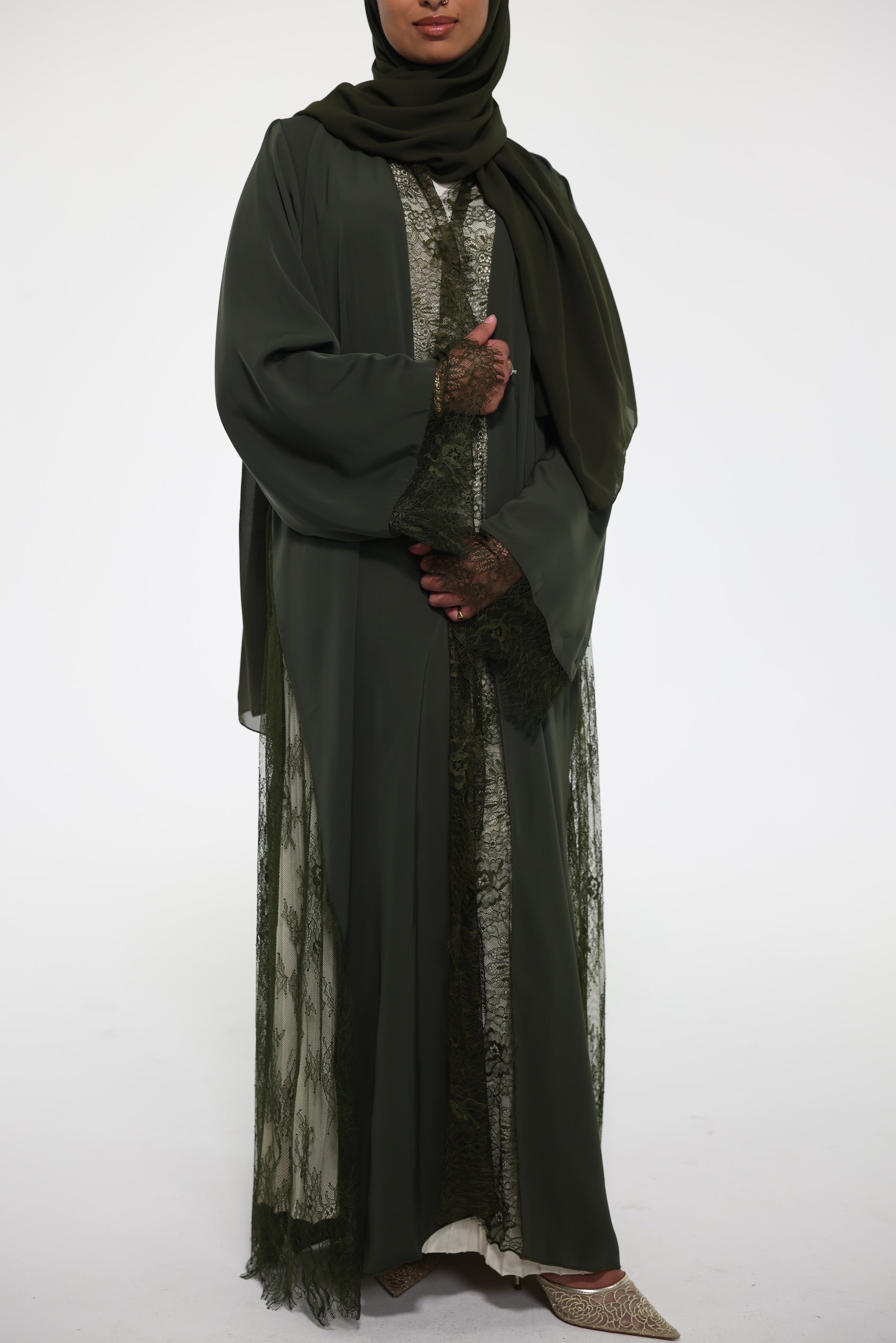 Minimal lace design, A-line silhouette, and quality material— this abaya is designed for everyday elegance with a touch of sophistication.