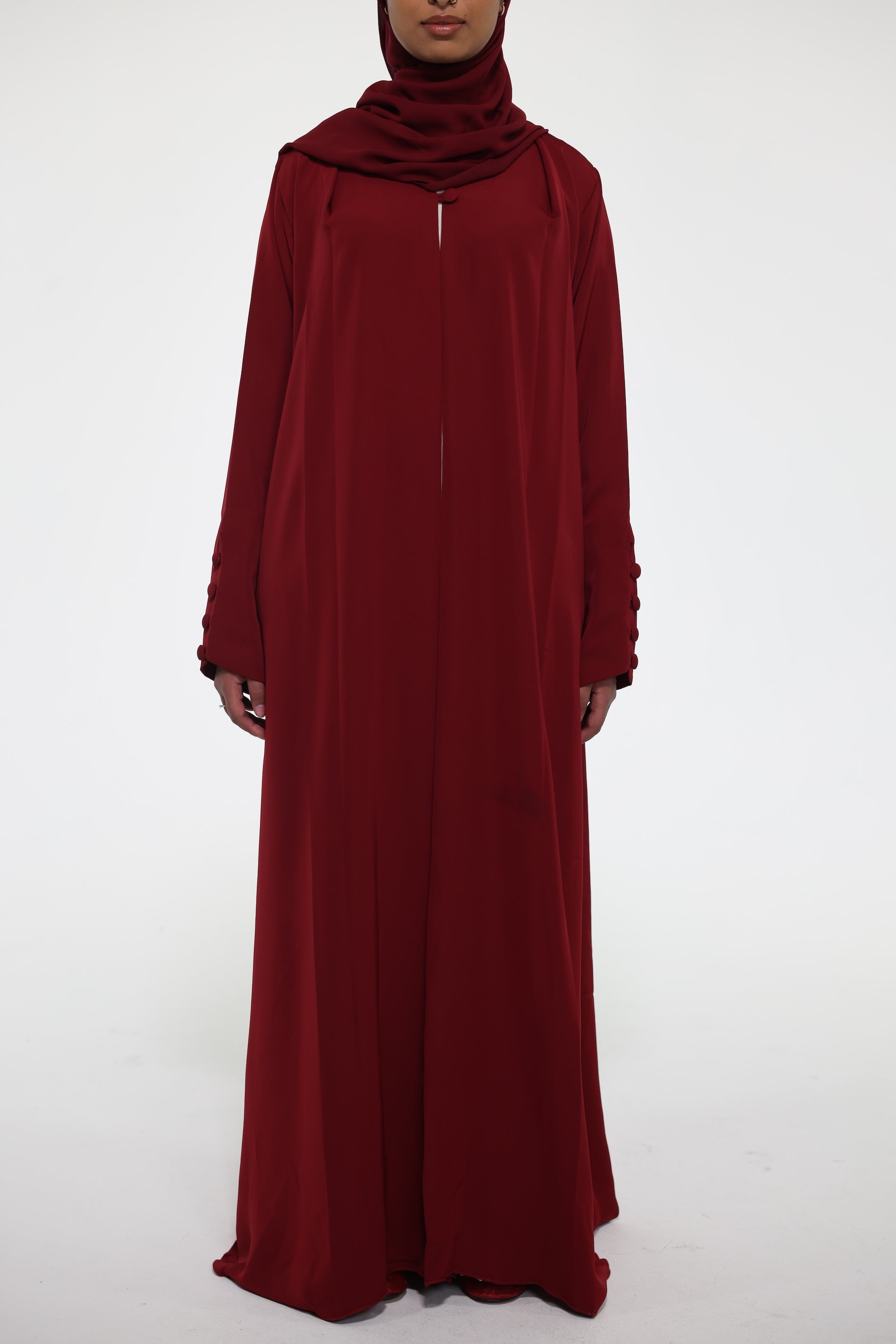The perfect everyday abaya that can be dressed up or down. It feature buttons along the sleeve and at center front to close. This abaya is styled with an umbrella cut and an A-line silhouette, falling loosely and elegantly drape for a soft, graceful look.